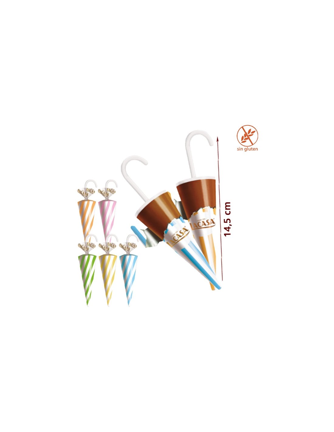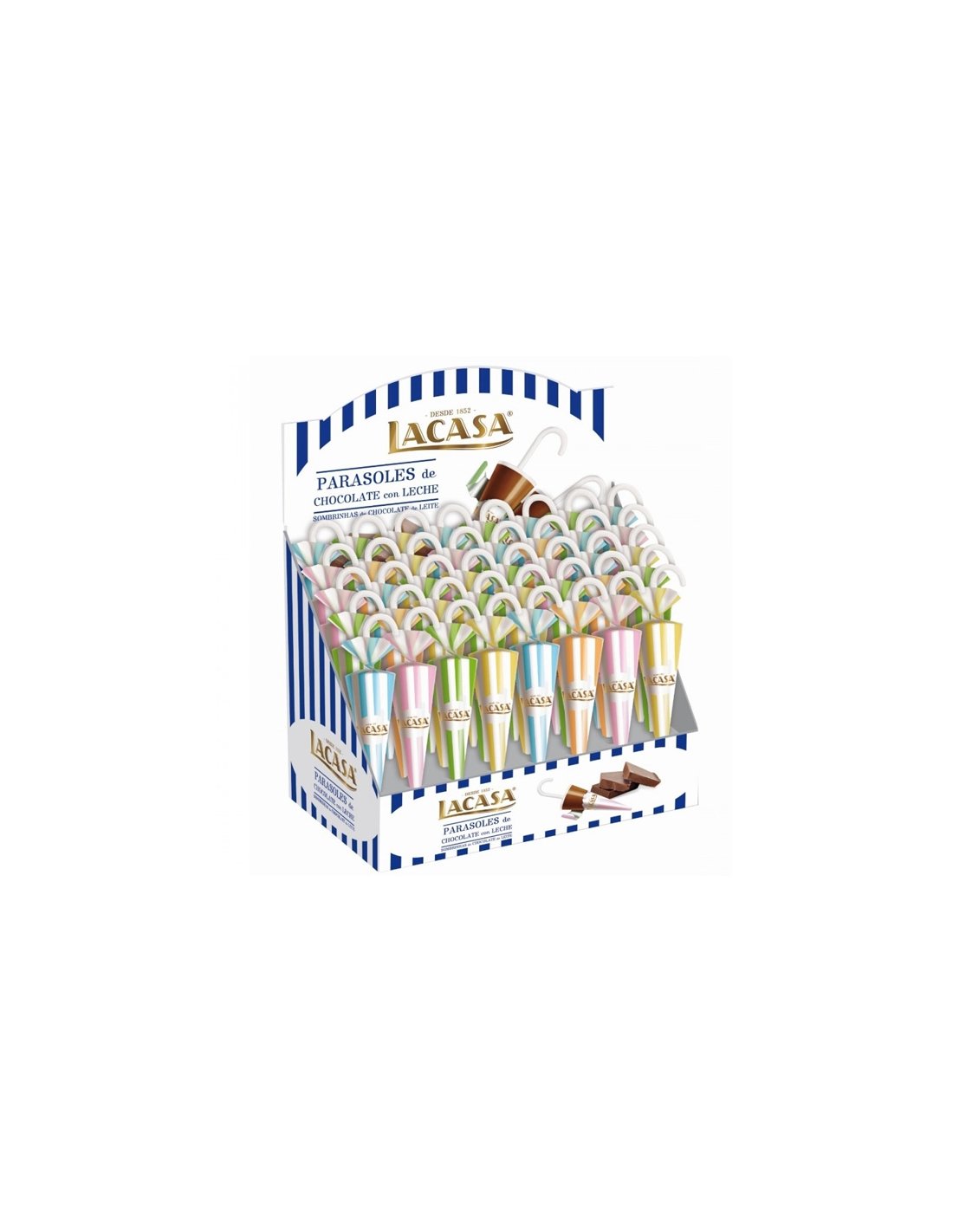 MAXI PARAGUAS LACASITOS 35g 40uds es un Estuche con 40 deliciosos Paraguas grandes de Chocolate con leche.