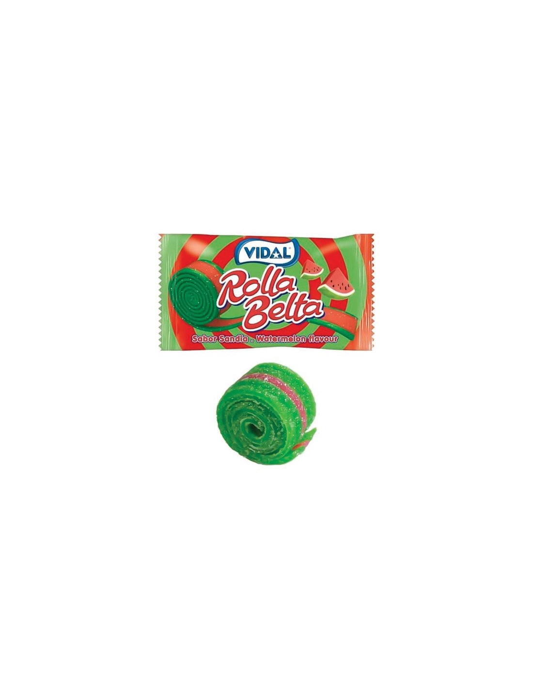 ROLLA BELTA SANDIA 24uds VIDAL Golosina n forma de espirales mágicas, con un explosivo sabor a sandia. Su diseño en espiral y su empaque individual te ofrecen una experiencia única y entretenida de disfrute.