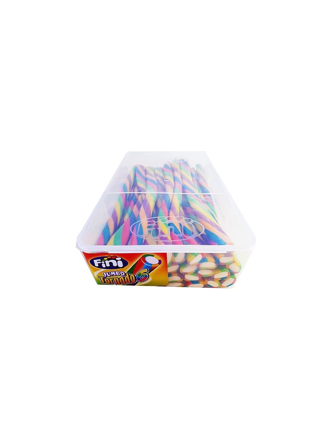 JUMBO TORNADO 6 COLORES son regalices más anchas de lo normal con relleno y sin pica. Se venden en tarros de 30 unidades.
