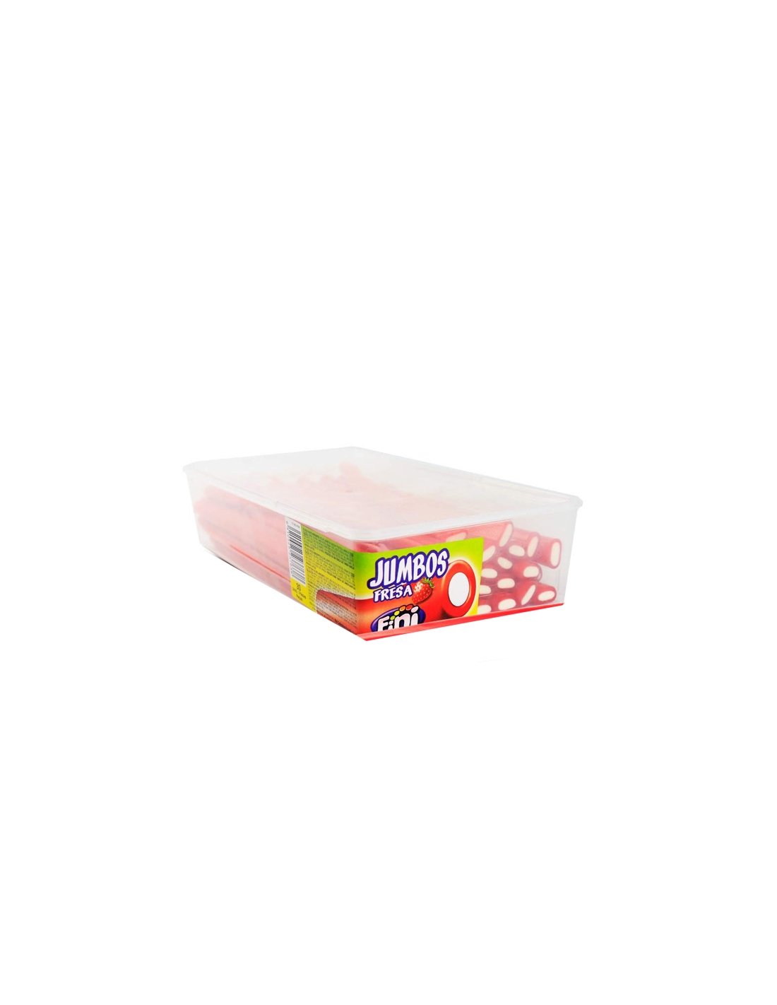 JUMBO sabor FRESA de FINI es una regaliz gigante de fresa con relleno de nata. Se venden en tarros de 30 unidades.