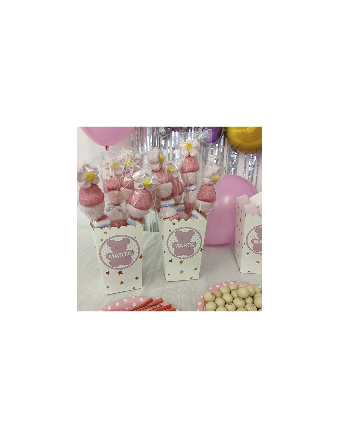¿Qué contiene el Pack de Mesa Chuches rosa para Bautizo? (puede haber una variación pero siempre siguiendo el color rosa)
