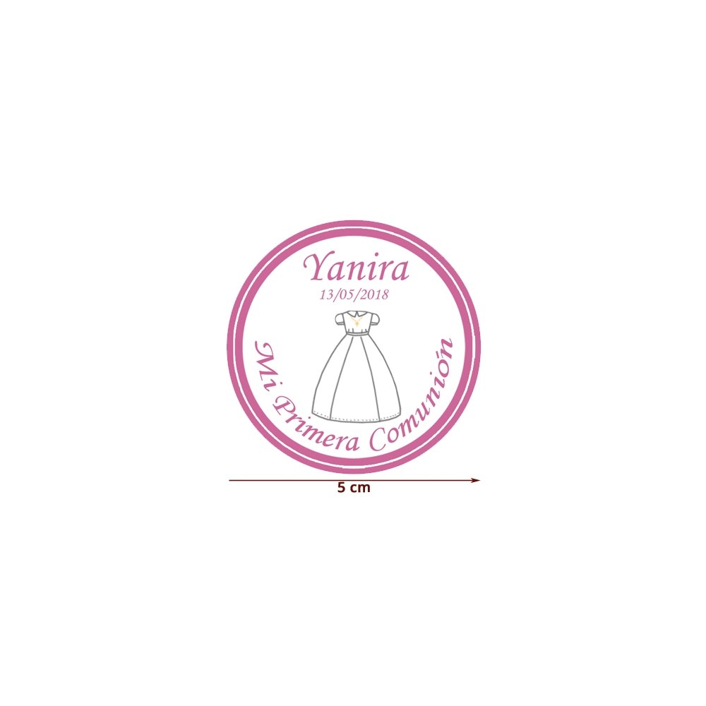 Etiqueta Pegatina Comunión Rosa Vestido Personalizada 5cm