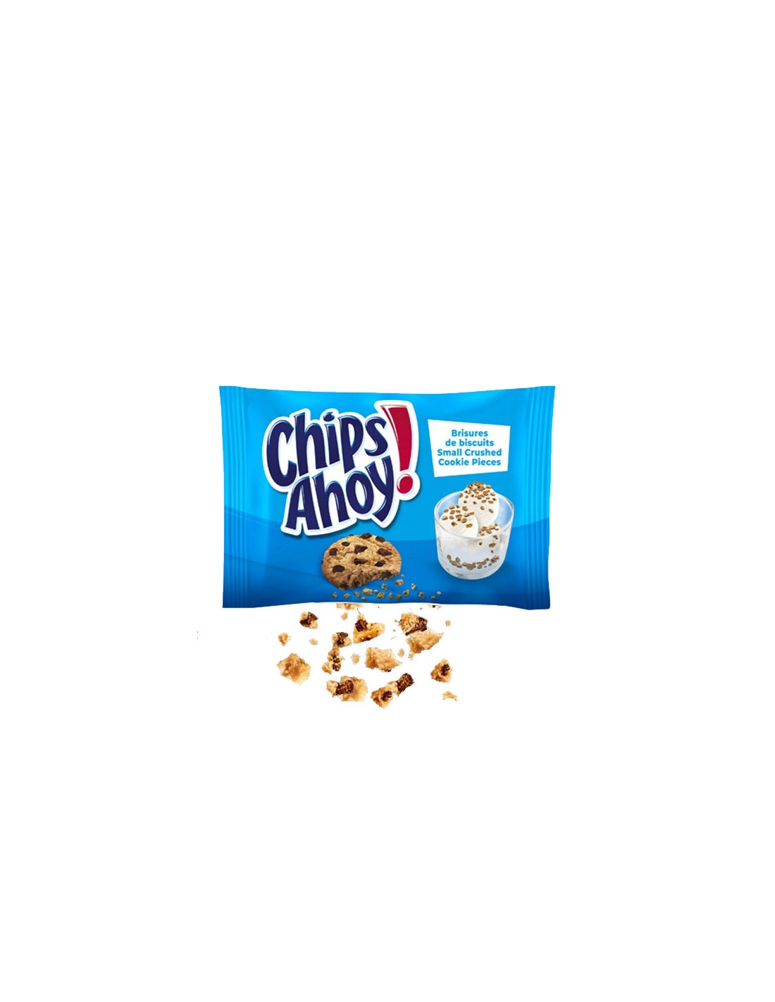 Toppings Galletas Chips Ahoy trozos para postres y Helados 400gr 12 Bolsitas es el troceado de una galletas con pepitas de chocolate.