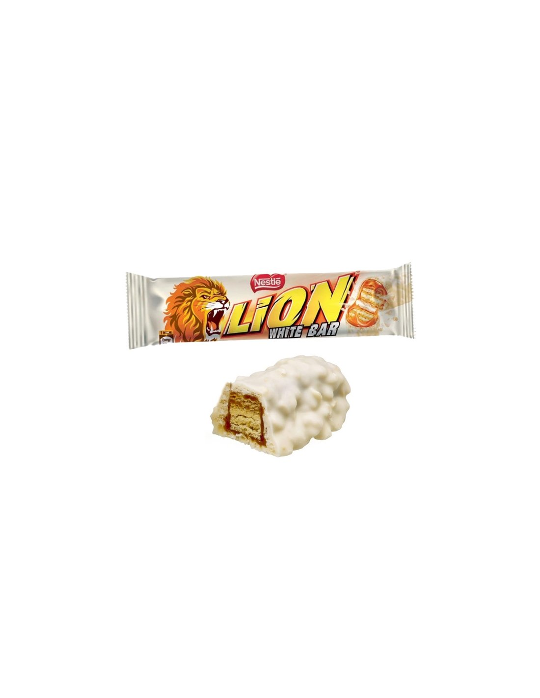 La barrita Lion con chocolate con leche es un clásico de Nestlé (originalmente de Rowntree’s, 1976) formada por una combinación irresistible: una capa crujiente interior de oblea (wafer), caramelo y arroz inflado, recubierta con chocolate blanco. Su diseño distintivo, irregular y aireado, representa la melena rugiente del león, aportando un doble efecto sensorial: textura crujiente por fuera y interior meloso y suave