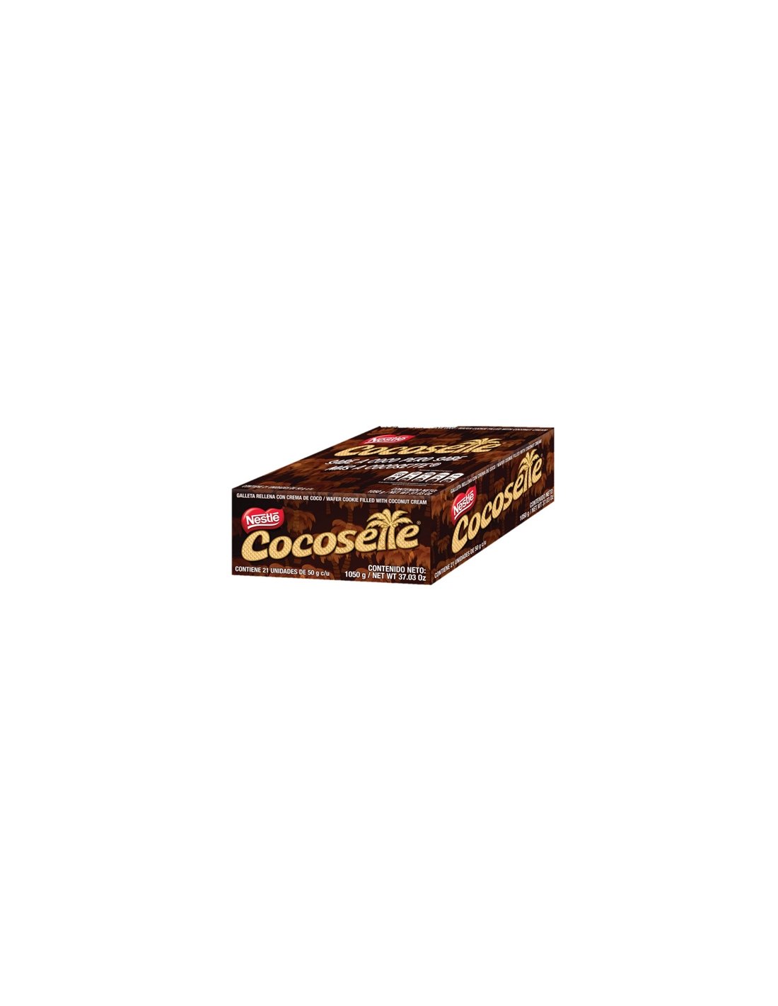 Las galletas Cocosette de Nestlé son barquillos rellenos de crema de coco que combinan una textura ligera con un sabor tropical característico. Se venden en cajas de 21 unidades envueltos individualmente.