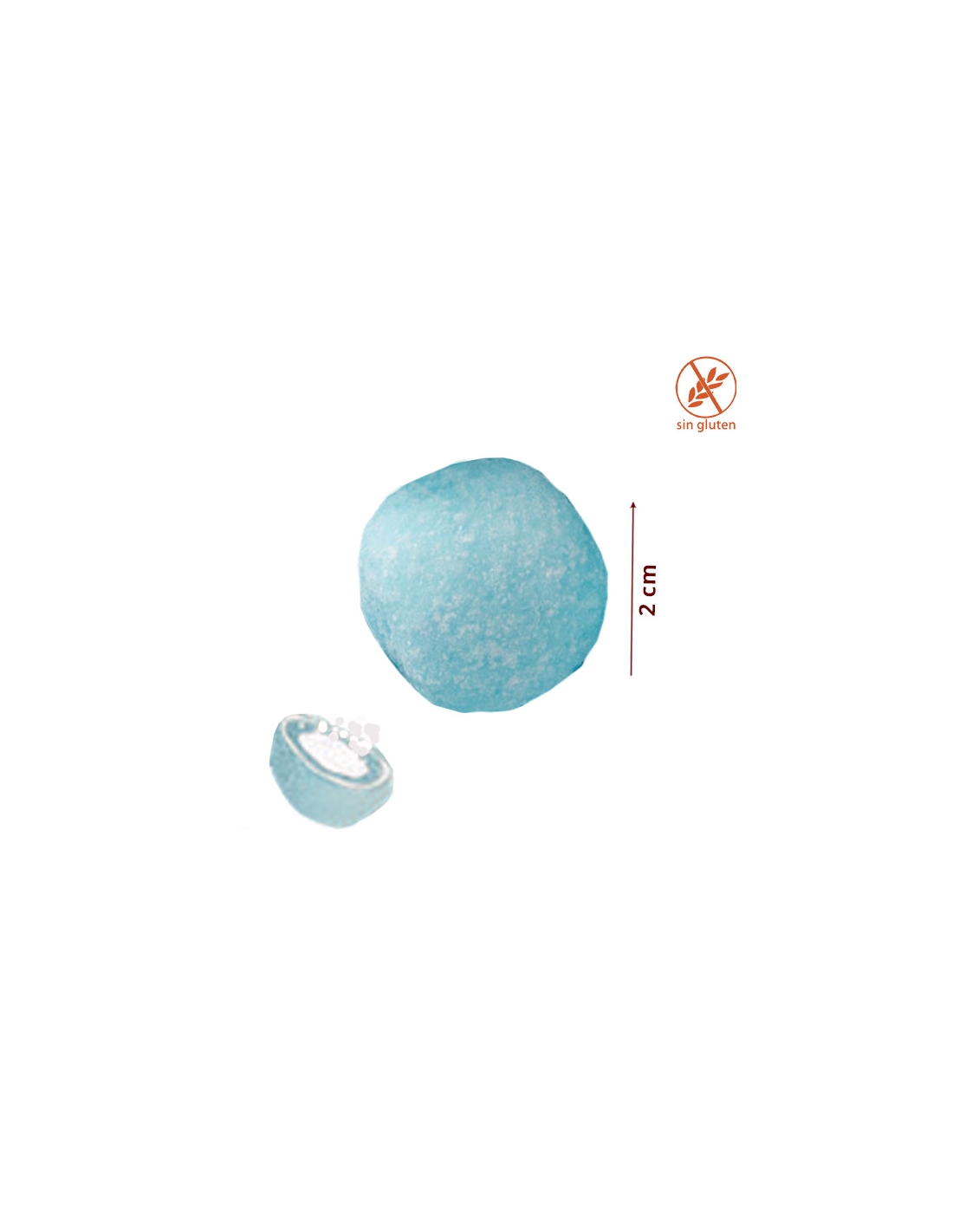 Caramelos Masticables Duros pica Rocket Balls Mora Azul 200uds Frisia son bolitas de caramelo de mora con polvo pica pica en su interior.