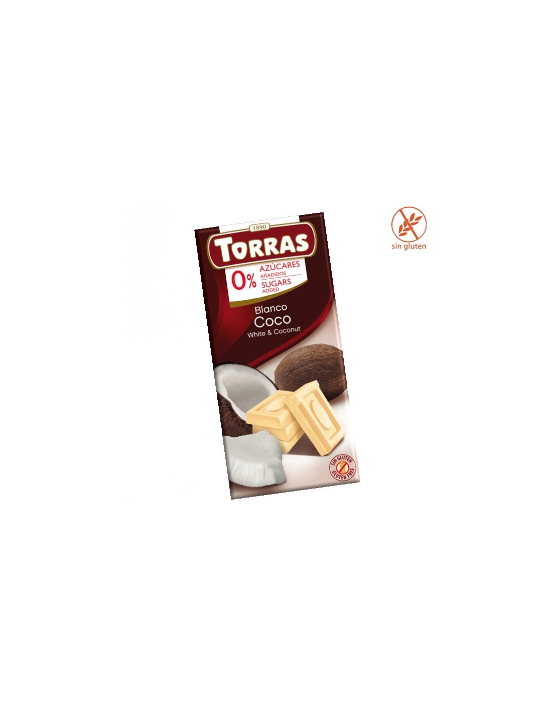 Tableta Chocolate Blanco con Coco sin azúcar 75gr Chocolates Torras
