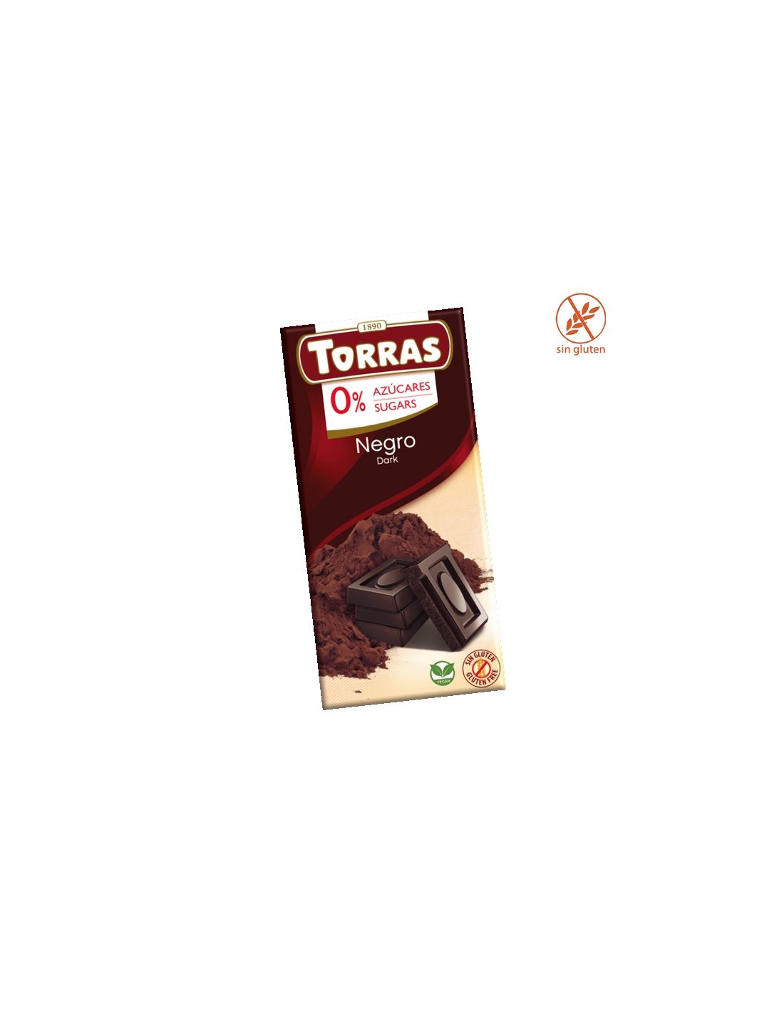 Tableta Chocolate Negro 51% sin azúcar 75gr Chocolates Torras es un chocolate negro con edulcorante. Sin Gluten y apto vegano