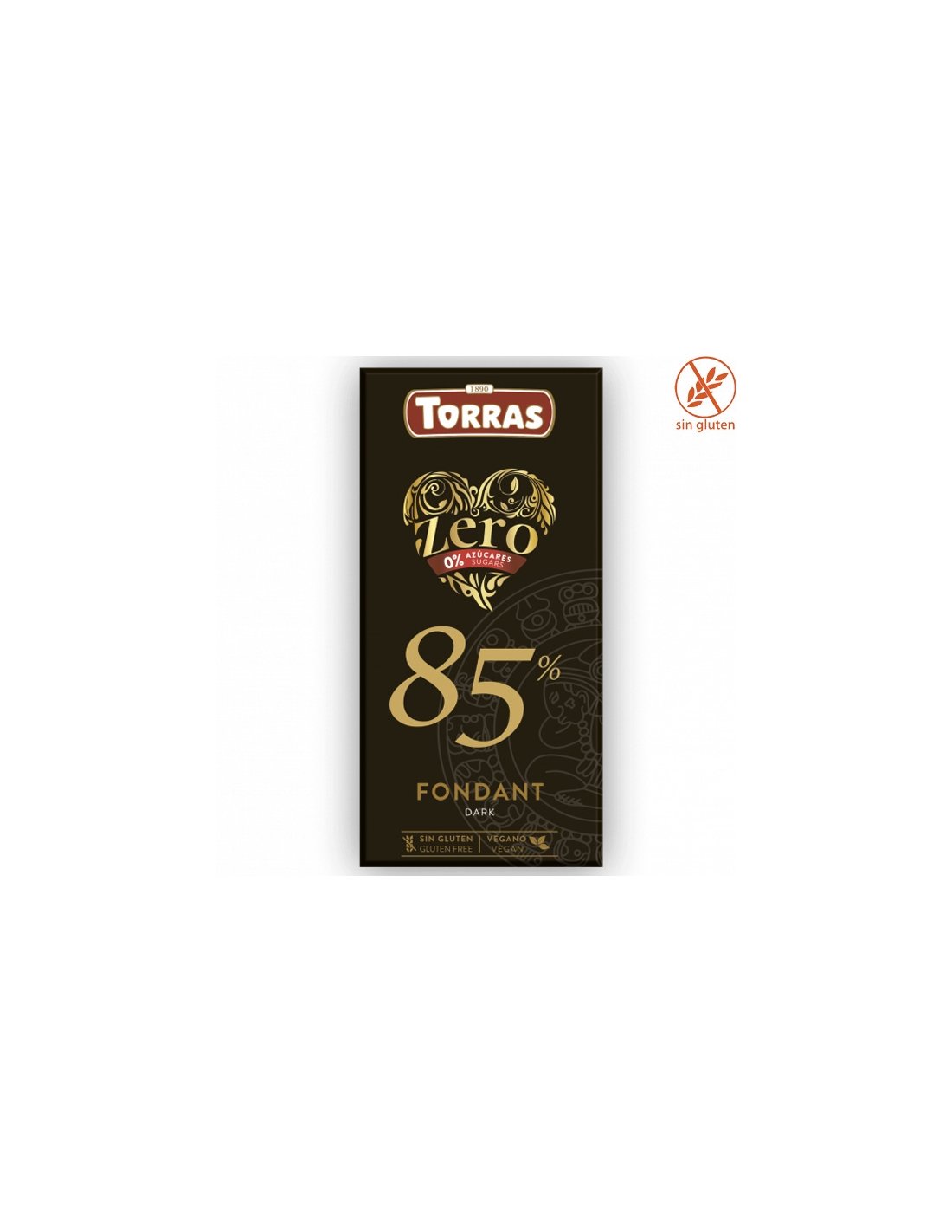 TABLETA CHOCOLATE 85% ZERO FONDANT 100gr TORRAS es una tableta de chocolate sin gluten y sin azúcares añadidos.