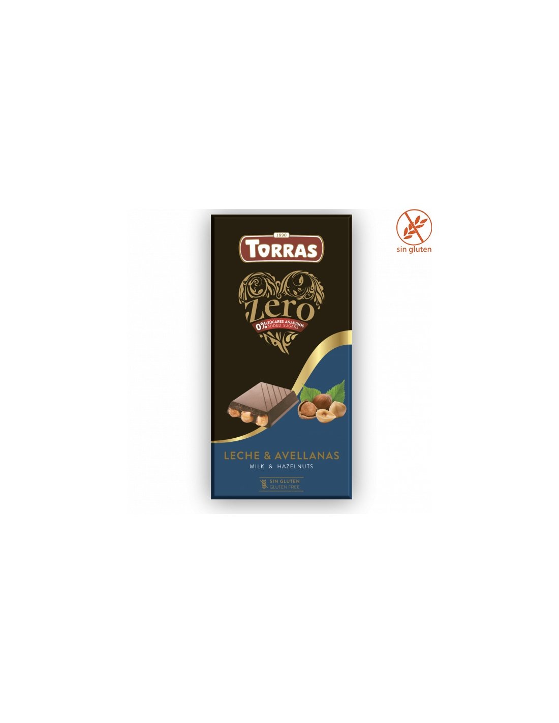 Tableta Chocolate con leche con Avellanas enteras Zero azúcares 125Gr Torras
