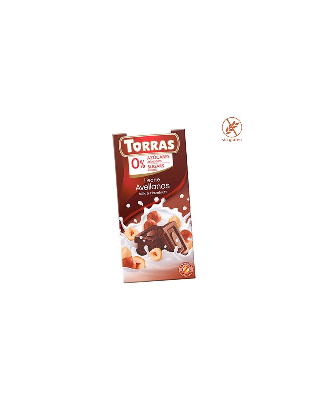 Tableta Chocolate Avellanas sin azúcar 75gr Chocolates Torras es un chocolate lecha avellanas con edulcorante. Sin Gluten y apto vegano