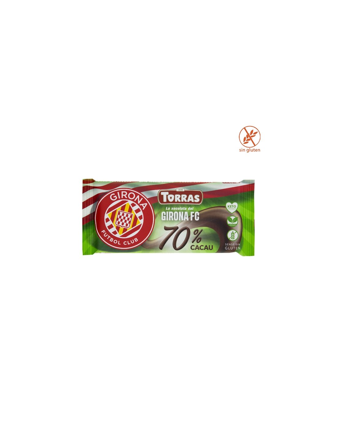Tableta Chocolate Negro 70% sin azúcar FC GIRONA 85gr Torras es un chocolate negro con edulcorante. Sin Gluten y apto vegano